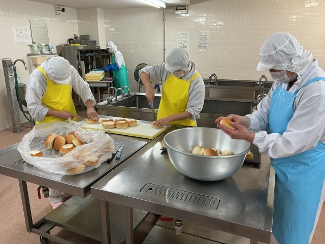 初めてのメニューでしたが、力を合わせて、とても美味しくでき上がりました。生徒や先生方にも大変好評でした。