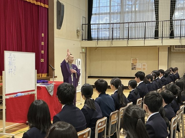 少し遅れてしまいましたが、1、2年生が受講した日本文化体験の落語の講演の記事をアップします。