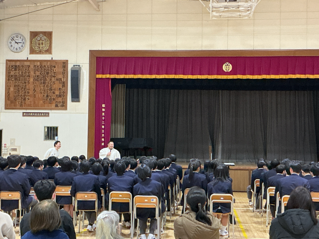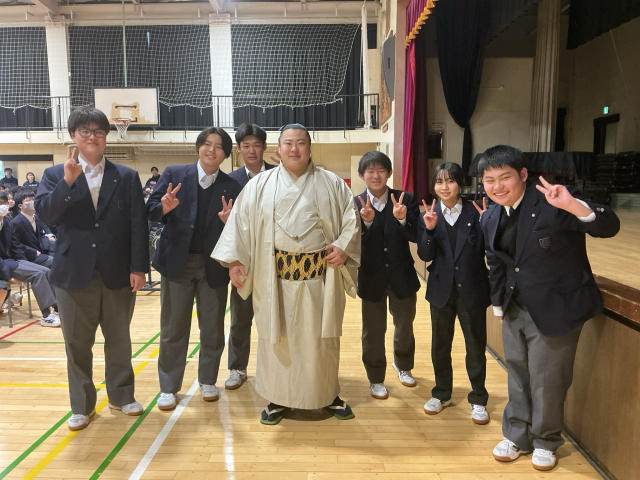 授業では、相撲に関する質問だけでなく、日々の生活や心構えについても丁寧にお話しいただき、生徒たちはトップアスリートの言葉に真剣に耳を傾けていました。