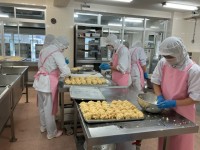 今日のカレーライスはTHE・王道のポークカレーライスでした。丁寧に炒めて作った手作りカレールウと、野菜や鶏ガラの旨みたっぷりのスープ、程よい脂身の豚肉が合わさり、コクがあり、美味しいカレーライスができました。残菜もとても少なく、生徒たちもよく食べてくれました。