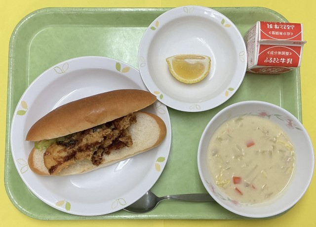 フィッシュサンド、豆乳チャウダー、はるか、牛乳