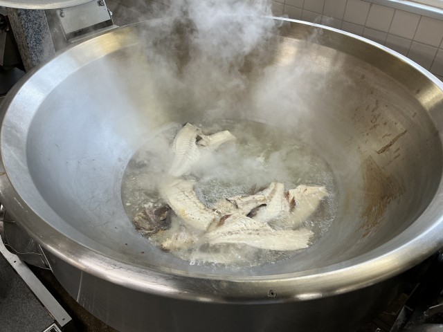 鯛めしは、オーブンで焼いた鯛の身をお米にのせて、鯛のアラでとっただし汁を加えて炊き込みました。身を丁寧にほぐして、よく混ぜて配缶してくれました。鯛の旨みが染みたごはんは上品な味でした。