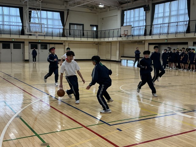 1年生の球技大会では、男子のバスケットボール、女子のドッチボール、