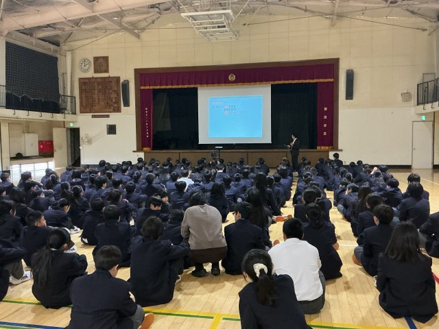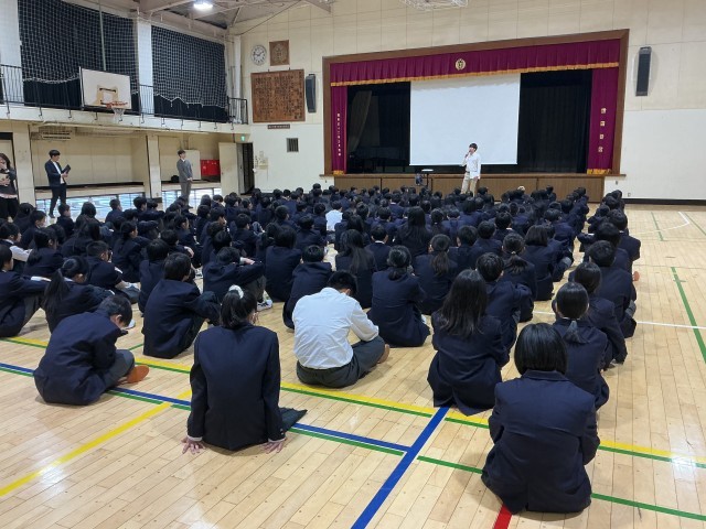 初めての1日授業で疲れた様子も見られましたが、先生の話を目を見てしっかりと聞く姿が印象的でした。これから始まる中学校生活に向けて、良いスタートを切ることができた学年集会となりました。
