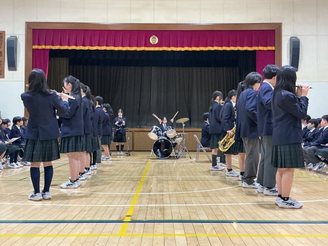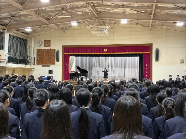 新入生に向けて校歌の合唱を贈り、3年生を中心に委員会や部活動の紹介をしました。