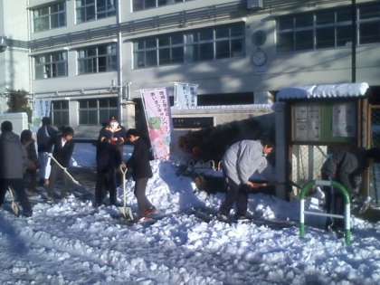 三学期のあいさつ週間が始まりました。昨日の雪が残る中、元気にあいさつが交わされていました。また、バスケットボール部を中心に雪かきを行ってくれ大変助かりました。
