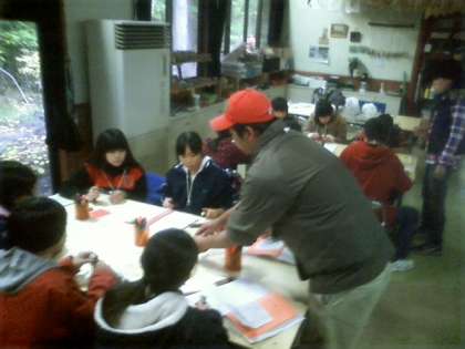 2日目の午後は、河口湖フィールドセンターでのガイドウォークとバードコール作りを行いました。
