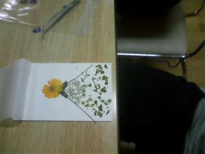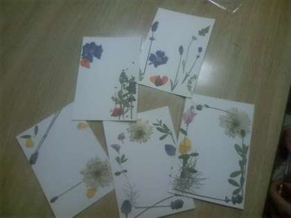 2日目の夜は、押し花ハガキ作りです。すてきな香りのハガキが出来上がりました。