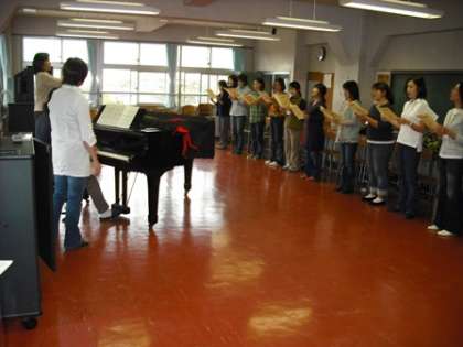 先生方も朝の打ち合わせの前に、毎日1曲ずつ歌い込んで、練習を積んでいます。