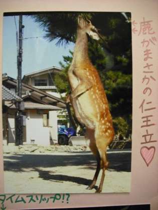 宮島の神の使いである鹿達も、上中生の手によって、いろいろな仕草や表情を激写されてしまったようです