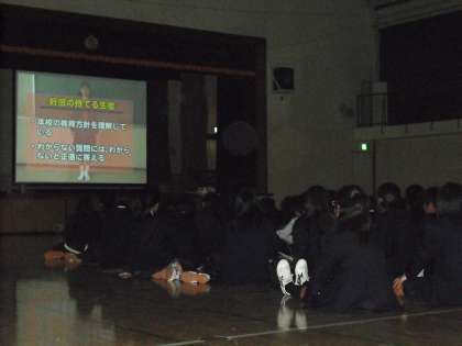 10/28(水)の学活で、3年生は進路に向けて面接についての学習をしました。面接の目的は何なのか、面接のポイントはどんなことなのか説明を受けた後、具体的に面接についてのビデオを見ました。