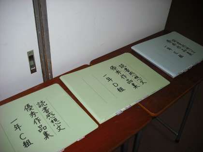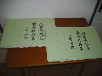 1年生の読書感想文です。各クラスから選ばれた作品がファイリングされています。