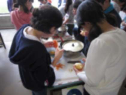 OL終了後、学園に戻り、『カレー作り』をしました。食材の下ごしらえをして、かまどで調理です。皆、上手なカレーができました。今日は一日OLでがんばり、おなかはペコペコです。5皿・6皿とお替わりをした生徒もいました。御馳走様でした!!