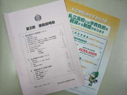 第2回進路説明会 公開日 2014/10/25 更新日 2014/10/25 おしらせ 10月23日(木) 第2回進路説明会を行いました。1・2年生の保護者の皆さんも参加しての会です。担当から「都立高校入試」「私立高校の入試」などについてお話ししました。3年生の保護者の皆様、高校見学をされた上で、お子様とよくご相談ください。 いいね(0)