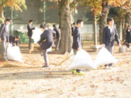 本校の樹木の紅葉が進んでいます。今日から落ち葉掃きボランティアが始まりました。今日は3年生の当番日です。手に箒や塵取りを持ち、一生懸命に清掃にあたってくれました。次回は12/3は1年、12/9は2年です。校内環境整備に励む生徒の皆さんでした。