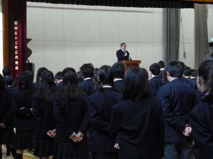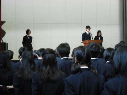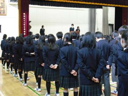 12/25(金)、2学期終業式が行われました。各学年代表が2学期の反省とこれからの課題を発表した後、校長先生の話、生活指導の先生の話がありました。