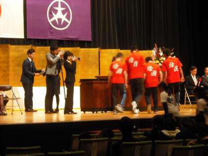「平成26年度 世田谷区児童生徒表彰」が世田谷区民会館で行われ、本校から3年男子生徒が「第20回全国選抜大会兼関西連盟創立45周年記念大会(主催:日本リトルシニア中学硬式野球協会)」【優勝】の実績により表彰を受けました。なお、同生徒は2月14日に『平成26年度東京都教育委員会児童・生徒等表彰』も受賞しています。日頃の優れた活動が受賞につながりました。また、温知学舎の給田少年野球チーム、千歳小学校吹奏楽団の皆さんの表彰もありました。皆さんおめでとうございます!