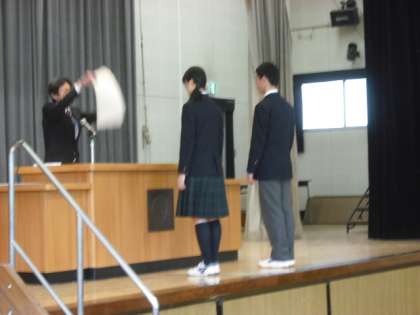卒業式予行練習を行いました。卒業証書授与から合唱などを含めて行いました。予行終了後には、都体育協会体育優良生徒表彰・都産業教育振興会優良卒業生表彰・都児童生徒表彰・区児童生徒表彰を行いました。また、最後に記念品贈呈が「父母と教師の会」会長様よりありました。3年間の諸活動で頑張った3年生を称えた一日となりました。