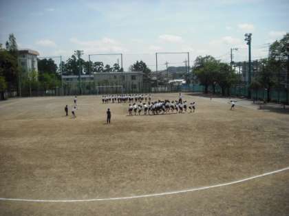 体育祭プログラムの中にある「生徒会種目 大縄跳び」練習風景です。1年生のためまだ不慣れで「せーの! いち!」の1回縄が回ることも難しいようです。1年生の皆さんの今後の健闘を期待します!