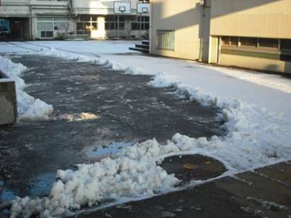 昨日からの雪が降り積もり、朝学校へ来てみたら校庭一面雪景色でした。生徒のみなさんが登校するときに雪で滑らないように、主事さんや警備主事さんが朝早くから校門から生徒昇降口まできれいに雪かきをしてくださいました。