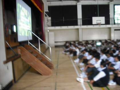 今月は「ふれあい(いじめ防止強化)月間」の取り組みを進めていますが、本日の全校朝礼では、『ストップ!いじめ 見つめよう考えよう』DVDを視聴しました。日々の友人関係で大切なことを学びました。1学期終業式まであと3週間ほどになりました。よい締めくくりが出来るよう友人関係を見直すきっかけにしてもらいたいと思います。