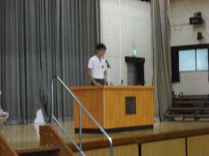 2学期初めての生徒会朝礼がありました。選挙管理委員長より、生徒会選挙の公示がありました。いよいよ生徒会選挙活動の始まりです。