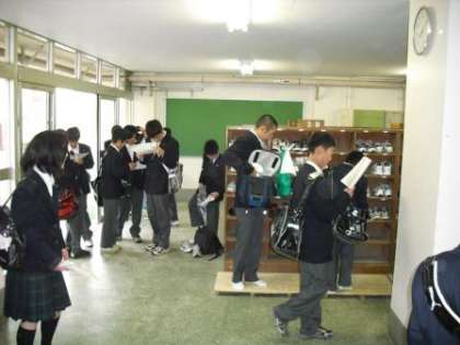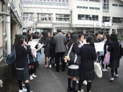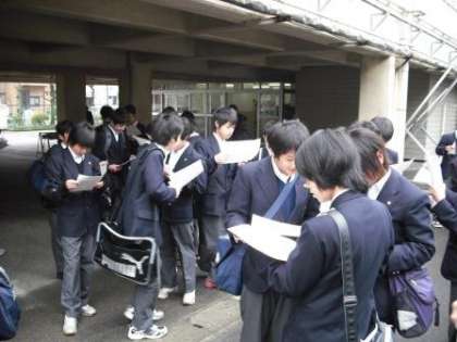 4月6日(火)、平成22年度の始業式が行われました。写真は毎年恒例のクラス分け発表の様子です。仲良しの友達と一緒のクラスになれて喜んでいる生徒もいれば、二年連続担任が一緒で驚いている生徒など、新学期早々子どもたちの様々な表情が見て取れました。新しい環境になり、子どもたち一人一人がさらなる成長を見せてくれることを期待します。