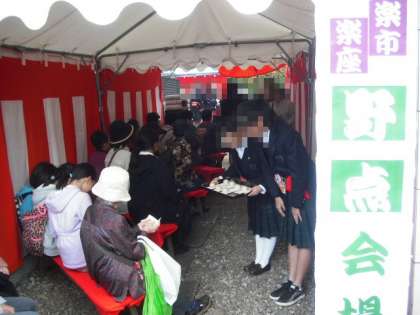 茶道部が世田谷駅前で開催された「楽市楽座」で「野点」を10月31日(土)11月1日(日)の2日間、600名の来場者に行いました。また、11月8日(日)の「フィールドフェスタ」では50名を超えるボランティアが「出店」をしました。中学生が地域への貢献活動をしました。