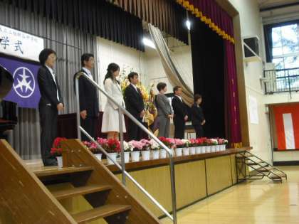 「第40回入学式」を挙行いたしました。168名の新入生を迎えての入学式です。昨年に続き、雨となりましたが、「入学式」の看板の前で記念撮影の列が出来ました。「新入生呼名」では担任の呼名に、元気よく起立する新入生の皆さんでした。