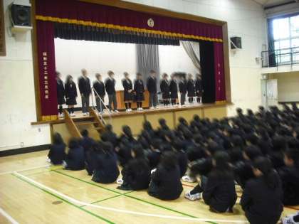 生徒会朝礼にて、「委員委嘱式」を行いました。委員長さんが代表して「委嘱状」をいただき、正式に委員会が発足しました。また、クラスの係も始動です。クラス・学年のために皆さん頑張って下さい!