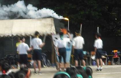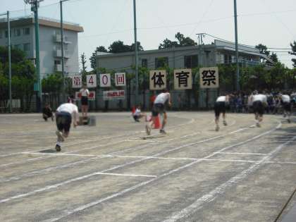 好天の中、第40回 体育祭を行いました。本校40周年とリオデジャネイロ五輪開催をお祝いする意味で、「聖火式」を行いました。午前の部は個人の競技を中心に進めました。