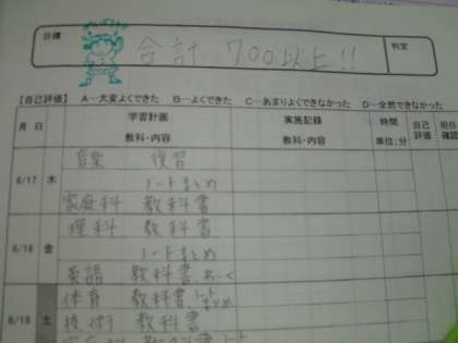 保護者の方へ:時々、学習計画表をごらんになって計画や実施状況をみてください。:)
