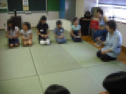 烏山小の「サマースクール」の取り組みの一つとして、上祖師谷中での茶道体験に児童の皆さんが来校されました。緊張しながら中学生の生徒の皆さんに作法を聞くなどすすめていました。上祖師谷中では、温知学舎の各校にボランティア派遣をして、小中の交流を深めています。