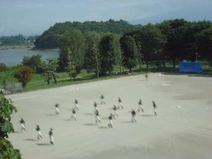 河口湖林間学園を宿舎にして、合同部活動合宿を行いました。台風の影響を考えて、約2時間遅れの出発です。学園に着いたら、早速練習です。野球部は園庭、バスケットボール部は体育館での練習です。