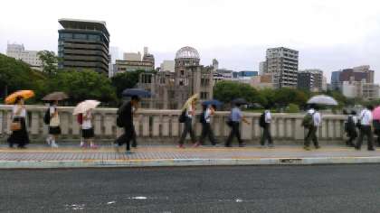 修学旅行 原爆ドーム(3年・3年I組) 公開日 2016/09/15 更新日 2016/09/15 おしらせ 9月14日(水) 原爆の子の像を後にして、原爆ドームへの移動中です。この日は小雨程度で、1日を過ごすことができました。 いいね(0)