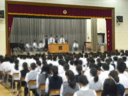 生徒会役員選挙を行いました。今回は区選挙管理委員会の皆様をお招きして、「18歳選挙権」の話を中心に、【未来を決める選挙に積極的に参加して欲しい】との講話をいただきました。お話の後は、立候補者による演説会です。投票には、実際に使われる「投票箱」を使用して投票を行いました。新生徒会は後日行われる「生徒会委嘱式」後に活動開始です。今まで活躍してくれた3年生の皆さんご苦労様でした。