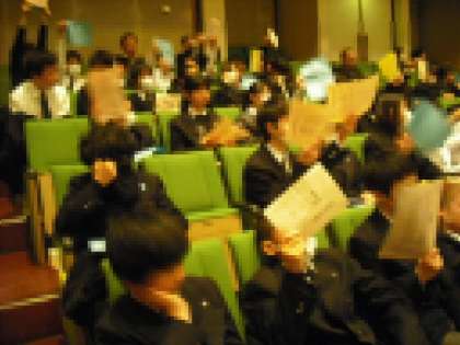 生徒会サミット 14歳の成人式 公開日 2017/02/03 更新日 2017/02/03 おしらせ 1月28日(土) 世田谷区民会館にて「生徒会サミット 14歳の成人式」が行われました。区内各校の生徒会役員の皆さんが集まり、当日に来場した1年生に向けて、メッセージを伝えました。生徒会役員のみなさん大変ご苦労様でした。 いいね(0)