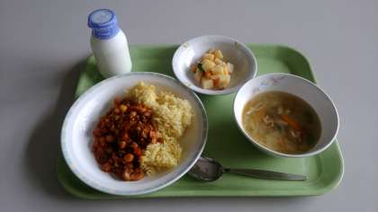 ジャンバラヤ、ポテトドレッシングサラダ、マカロニスープ