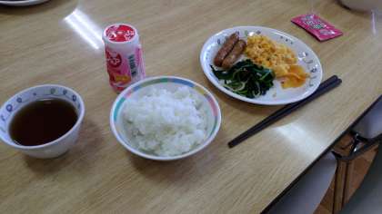 緑の休暇村への出発を控え朝食と水筒の準備が整いました。