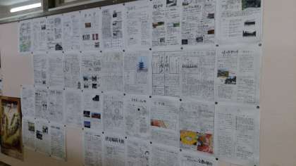 9月13日出発の修学旅行事前学習が廊下に掲示されています。さすが、最上級生の作品です。