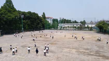 試験終了後の昼休みは、上中生の元気な声に溢れかえっています。ご褒美は青空です。
