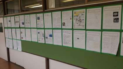 河口湖移動教室後1か月が経ちました。でも、4階のフロアは河口湖の香りいっぱいです。河口湖新聞、バードコール、そして思い出の写真。