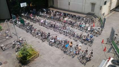 猛暑の中の保護者会にもかかわらず、大勢の保護者の方に足をお運びいただきましたことを、深く御礼申し上げます。駐輪場も満員御礼です。