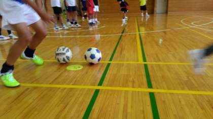 サッカー部は体育館でトレーニング中です。