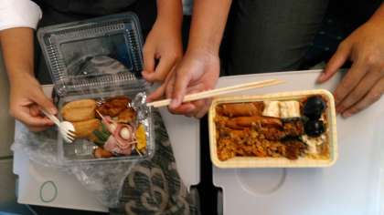 広島まで残り1時間ほどです。お昼ご飯でリフレッシュしています。