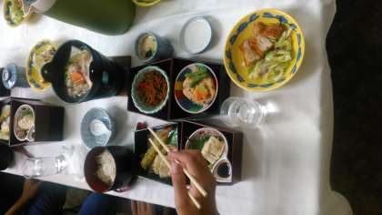 京都市内班行動が無事終わりました。夕食を楽しんでいます。