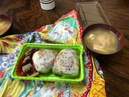 無事奥庭荘に到着です。けんちん汁に舌鼓。おかわりしている元気なI組を富士山も応援しています。