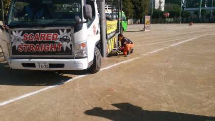 わかりやすい説明と実際の事故の様子をプロの方たちに目の前で再現してもらいました。