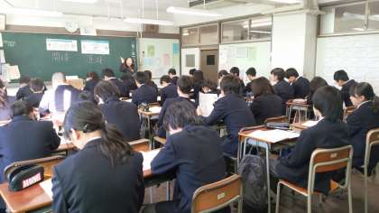 日本証券業協会の方を講師にお招きしてのキャリア教育。テーマは株式会社です。社名と社長を決め、商品開発を実際に体験することができました。
