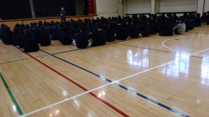 2学期最後の学年集会。夏に始まり、冬に終わる今学期の道のりを振り返り、新年に備えています。